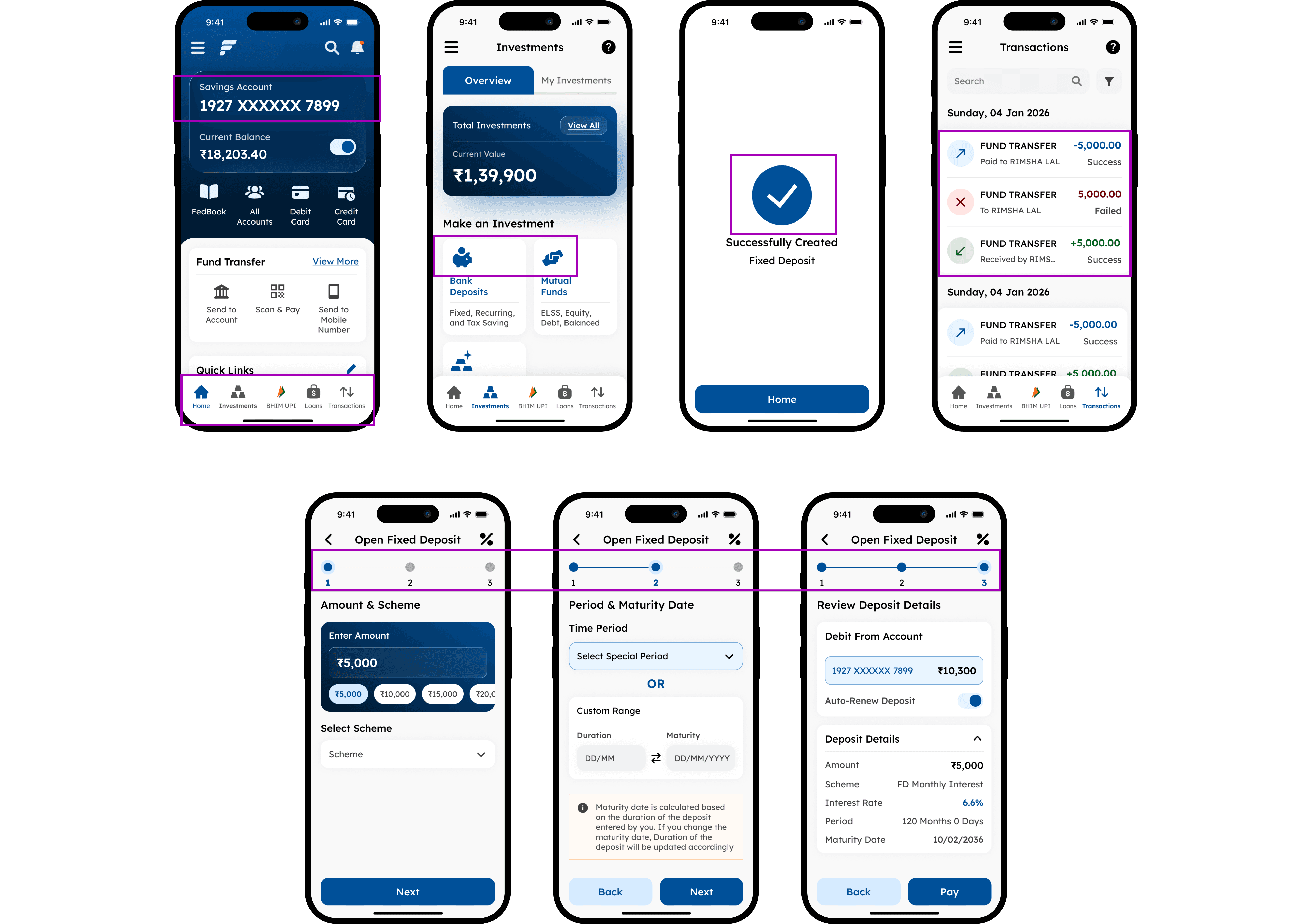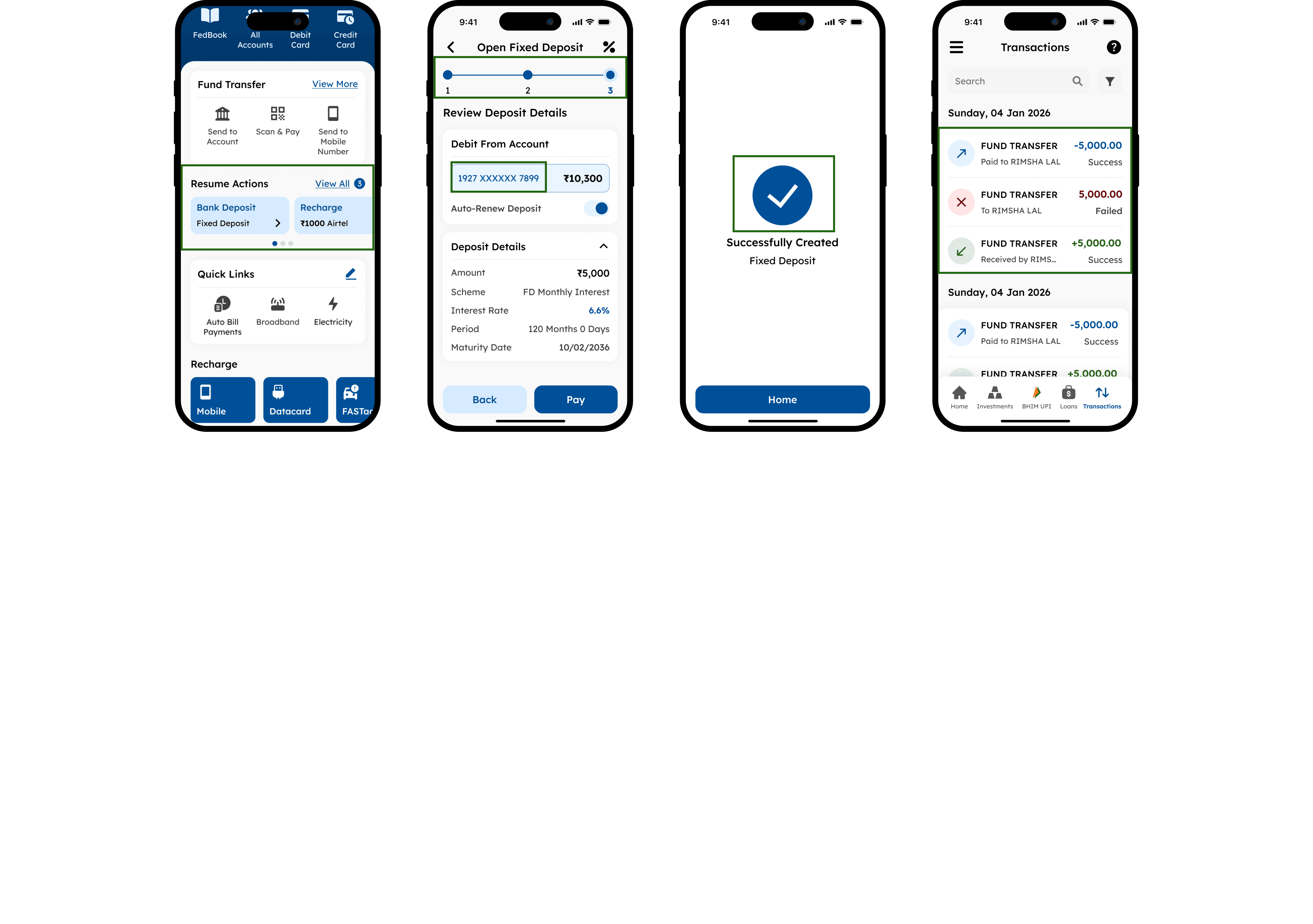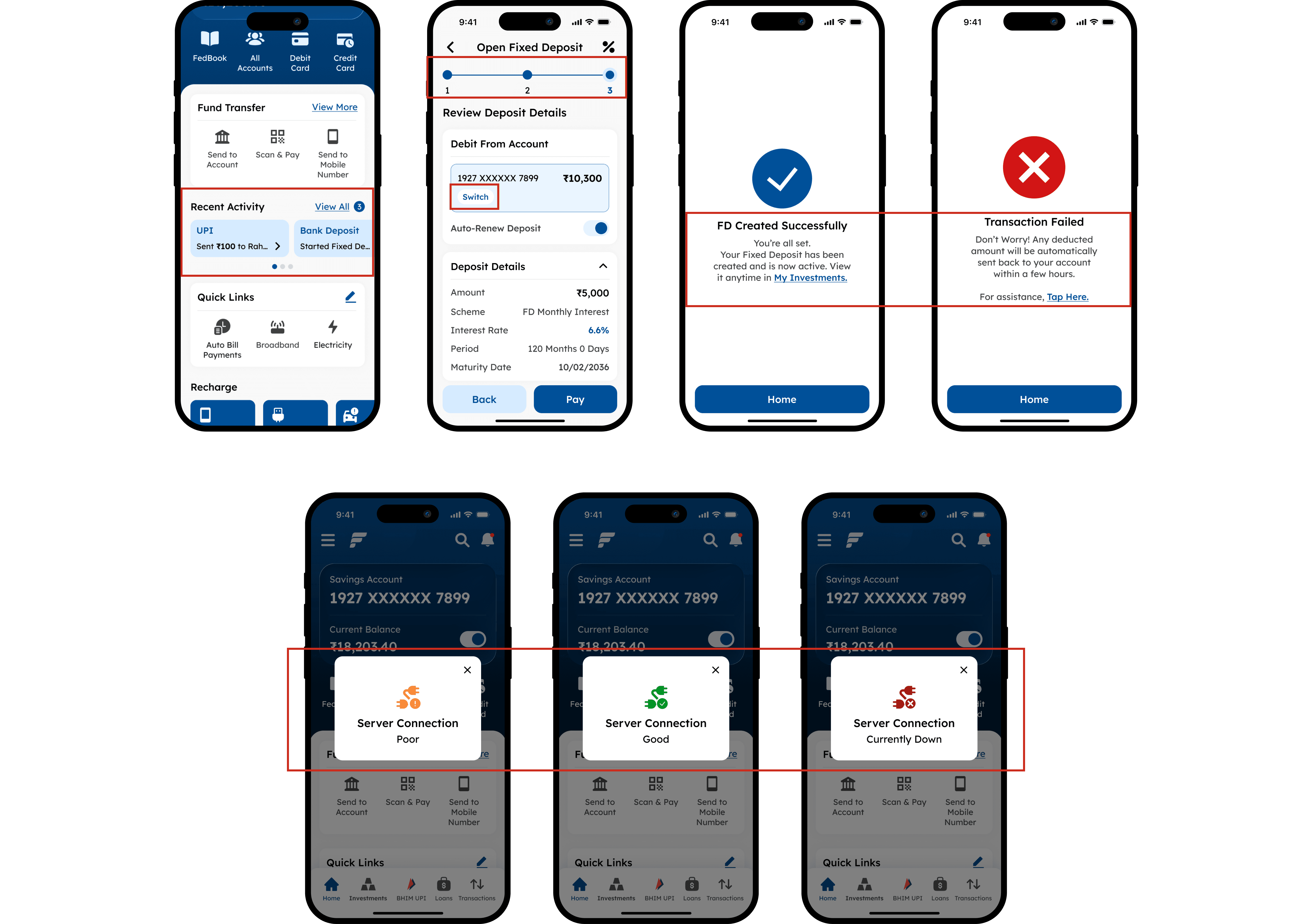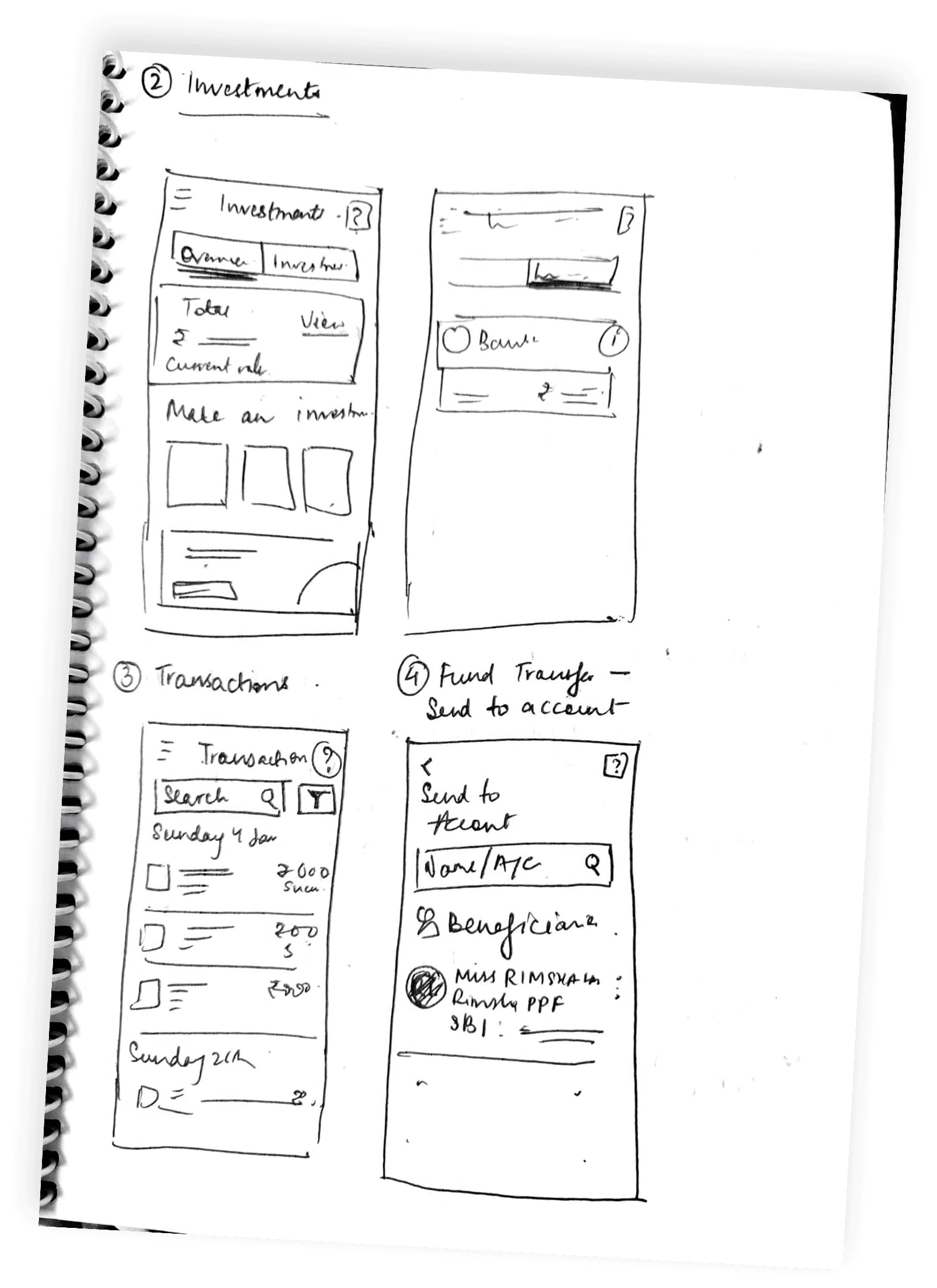 Redesign any four screens each from banking/any one transaction application for:
