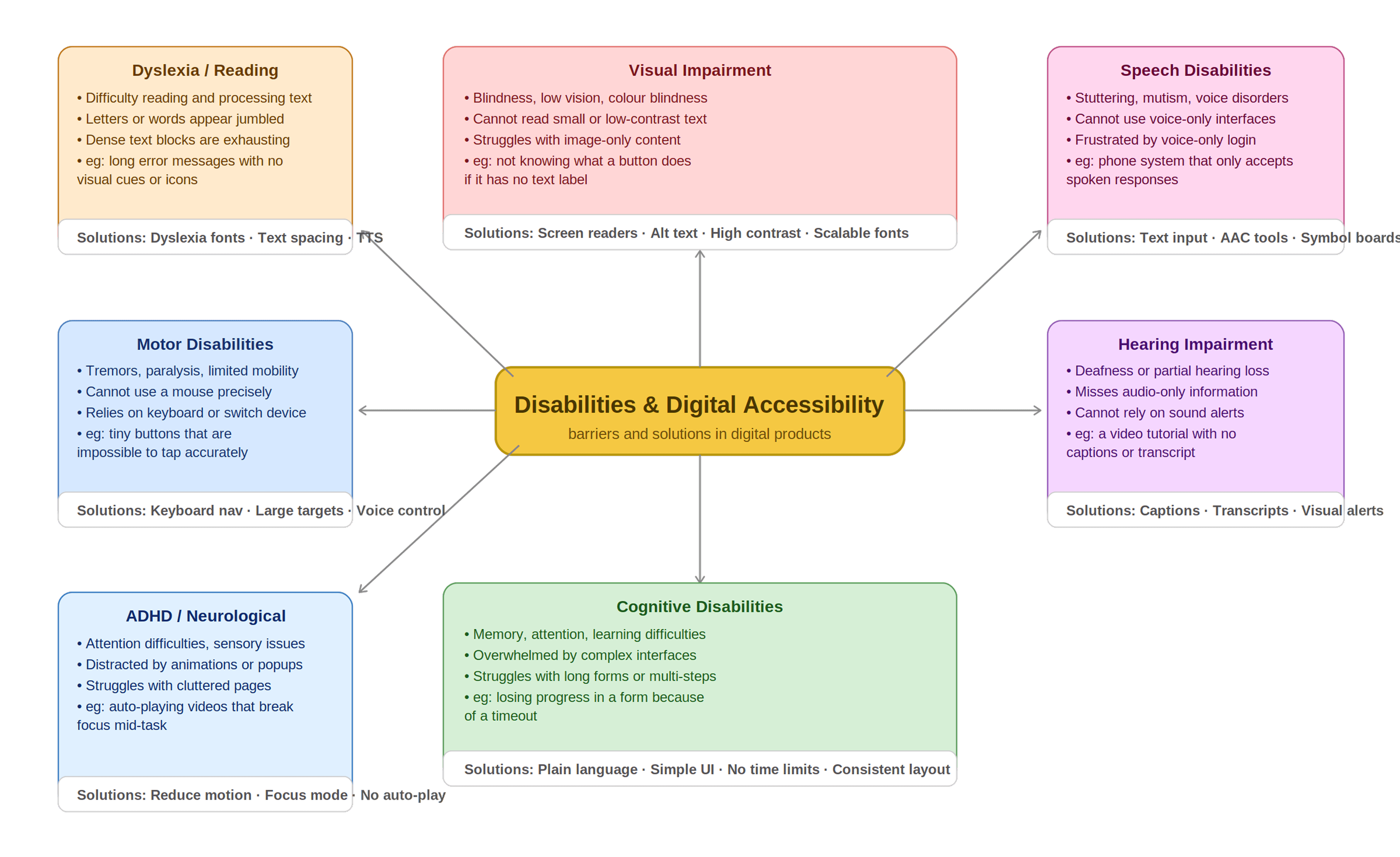 Designing for Edge Cases: Real users rarely fit neatly into a single profile. True inclusivity means designing for the full spectrum of how needs can co-exist, including overlapping disabilities and high-stakes moments, not just the most common case.