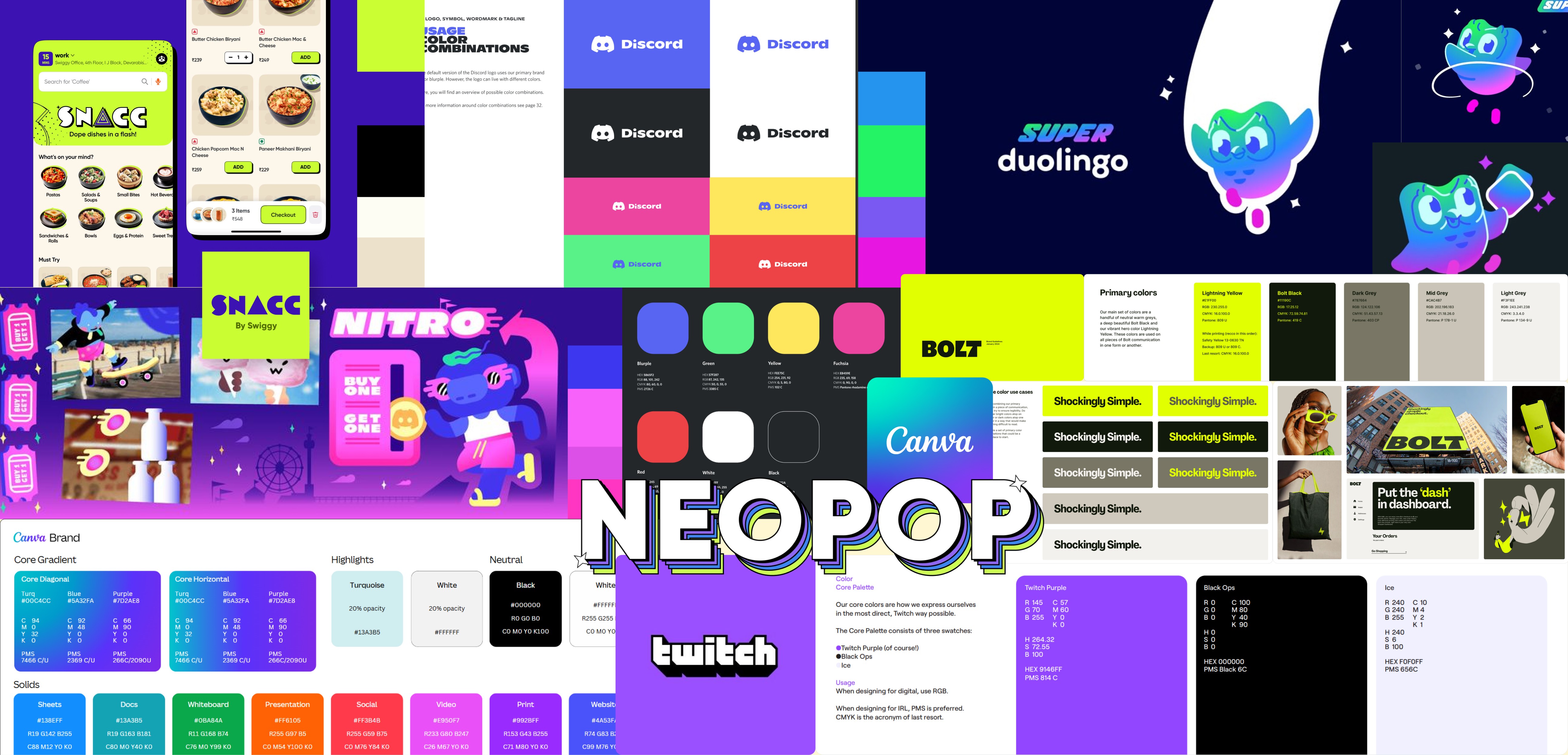 Images: Snacc by Swiggy, Discord, Bolt Finance, Twitch, Canva, Super Duolingo, Neopop by Cred